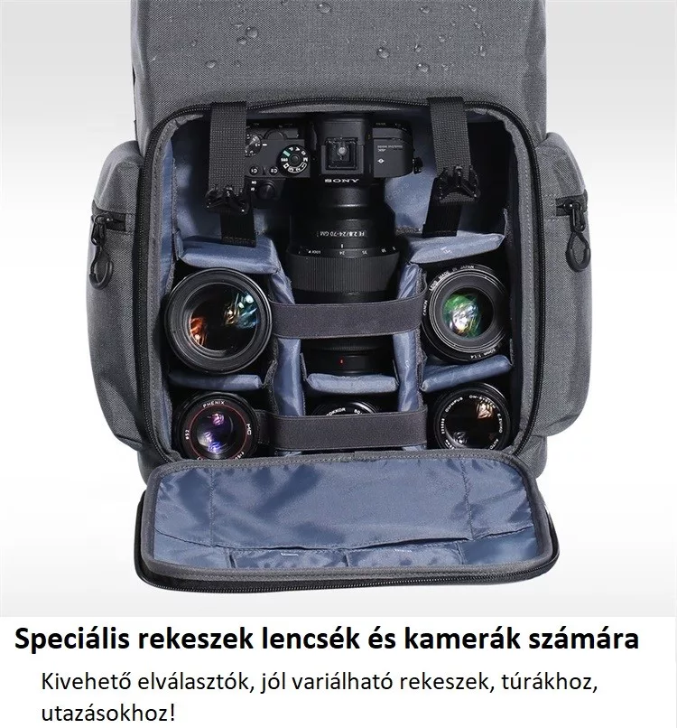 K&F Concept KF-13-098V2 professzionális kamera hátizsák, laptop zsebbel 22L - fekete