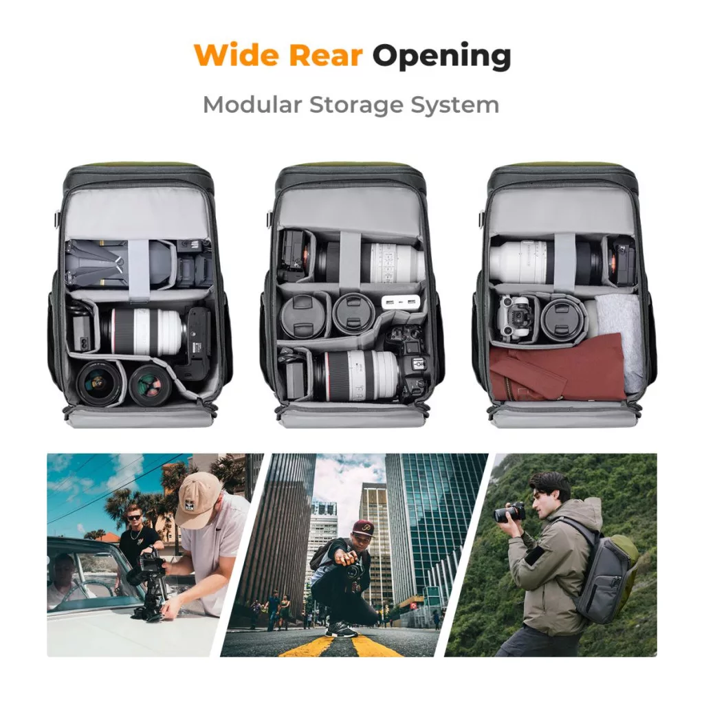 K&F Concept Alpha 25L fotós hátizsák - Nagy kapacitású fotós táska esővédővel, természetjáróknak és városi kalandoroknak