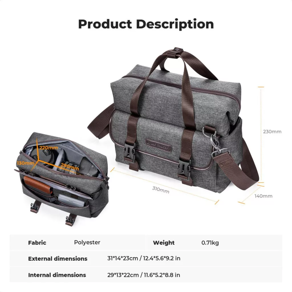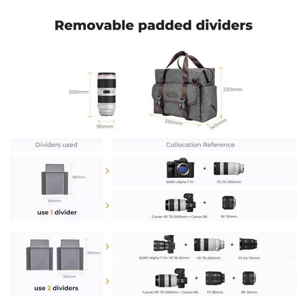 A K&F Concept válltáska tökéletes választás a modern városi élethez, akár mindennapi használatra, akár különleges alkalmakra. Elegáns, mégis praktikus kialakítása lehetővé teszi, hogy bárhová magaddal vidd, anélkül, hogy kompromisszumot kötnél a megjelenés vagy a funkcionalitás terén.
