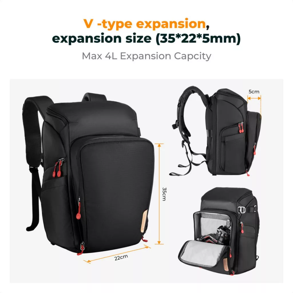 K&F Concept Alpha 25L fotós hátizsák - Nagy kapacitású fotós táska esővédővel, természetjáróknak és városi kalandoroknak