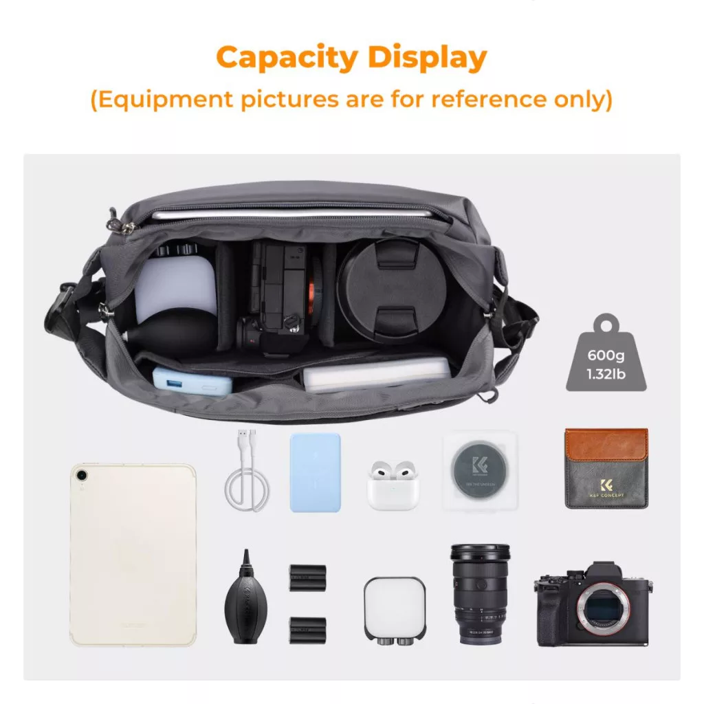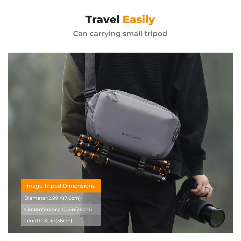 A K&F Concept sling bag könnyen hordozható és tökéletes választás mindennapi használatra, városi sétákhoz vagy fotós kirándulásokhoz. Kompakt kialakítása lehetővé teszi, hogy kényelmesen magaddal vihesd bárhová, biztosítva a felszerelésed biztonságos tárolását és gyors elérhetőségét.