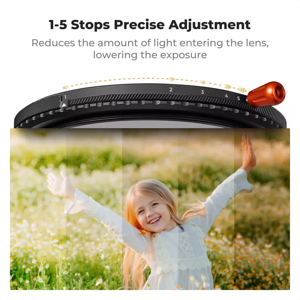• ND2-ND32 változtatható semleges szűrő (1-5 fényérték): Lehetővé teszi a hosszú expozíciós idő vagy széles rekesz használatát erős fényben, részletvesztés nélkül.