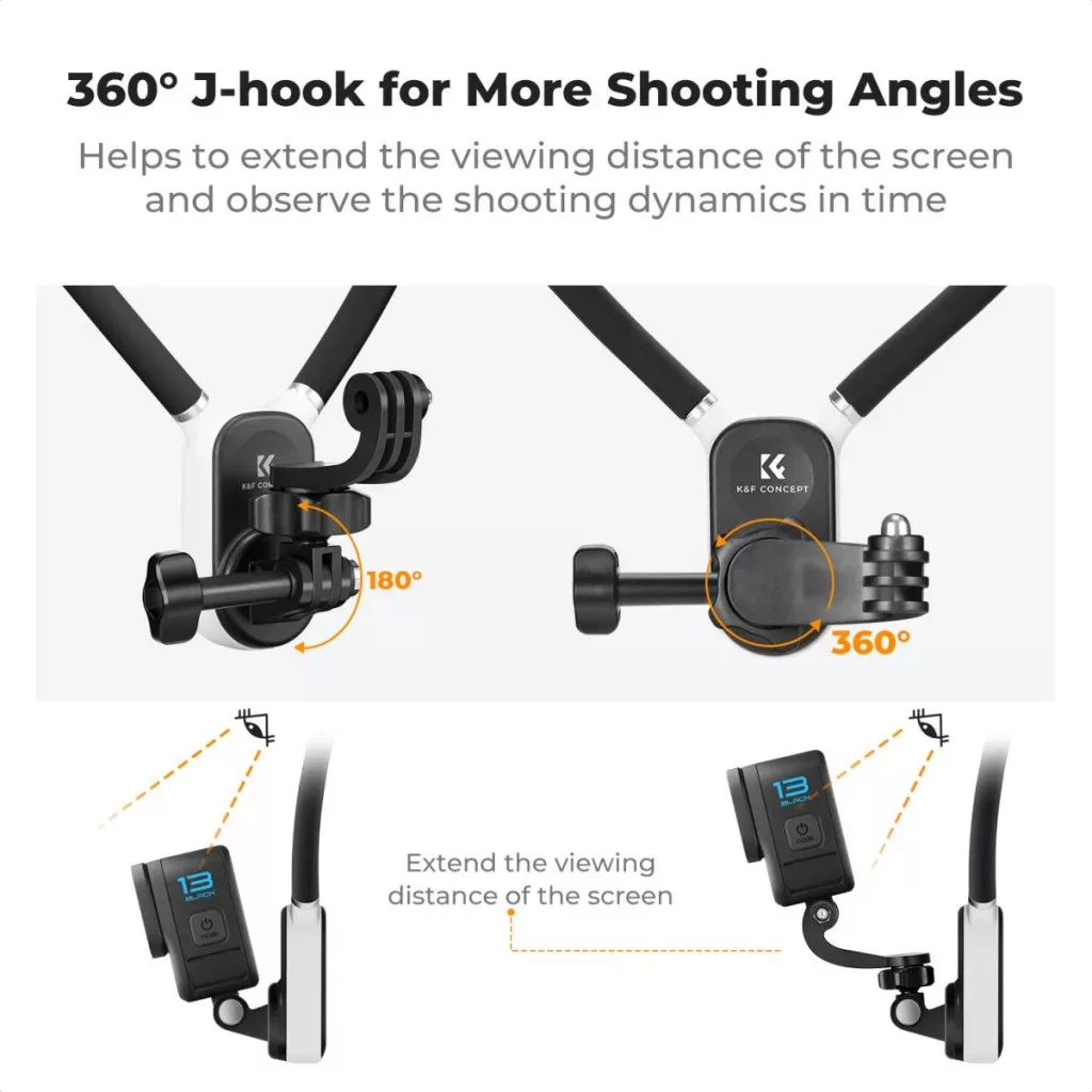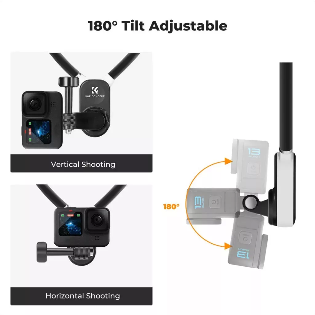 K&F Concept nyakba akasztható akció kamera tartó, Gopro és DJI Pocket 3 adapter (KF-31-129)