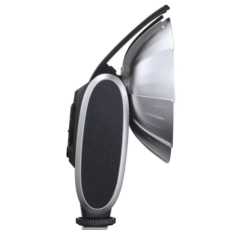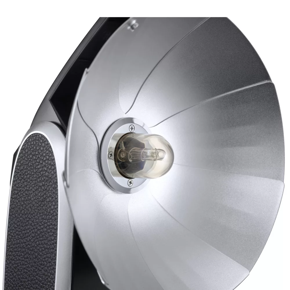 Die Retro-Atmosphäre des Lux Senior wird im Gebrauch deutlicher. Erleben Sie die klassische Art des Fotografierens mit dem fächerförmigen Silberreflektor, der das Licht formt, und der Blitzlampe, die eine klassische Form mit neuer Technologie kombiniert.