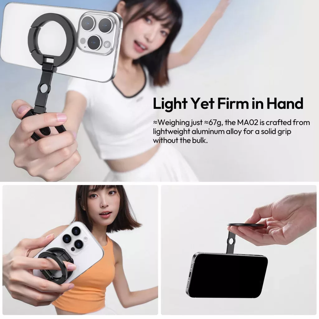 • Állvány és tartó egyben: használható asztali telefonállványként videózáshoz, videóhívásokhoz vagy tartalomfogyasztáshoz.