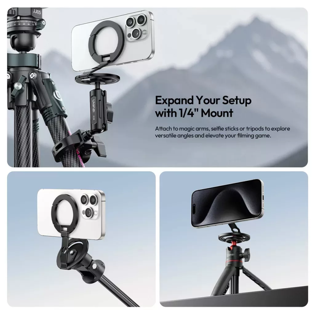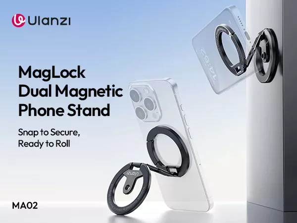 Ulanzi MA02 összehajtható mini állvány, Magsafe kompatibilis telefonokhoz, karabiner, fekete (UL-M067)