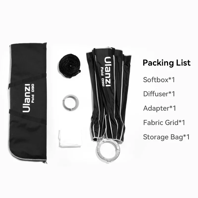 Ulanzi D90 90cm-es nyitható parabola méhsejtráccsal, Bowens csatlakozás (UL-L055)