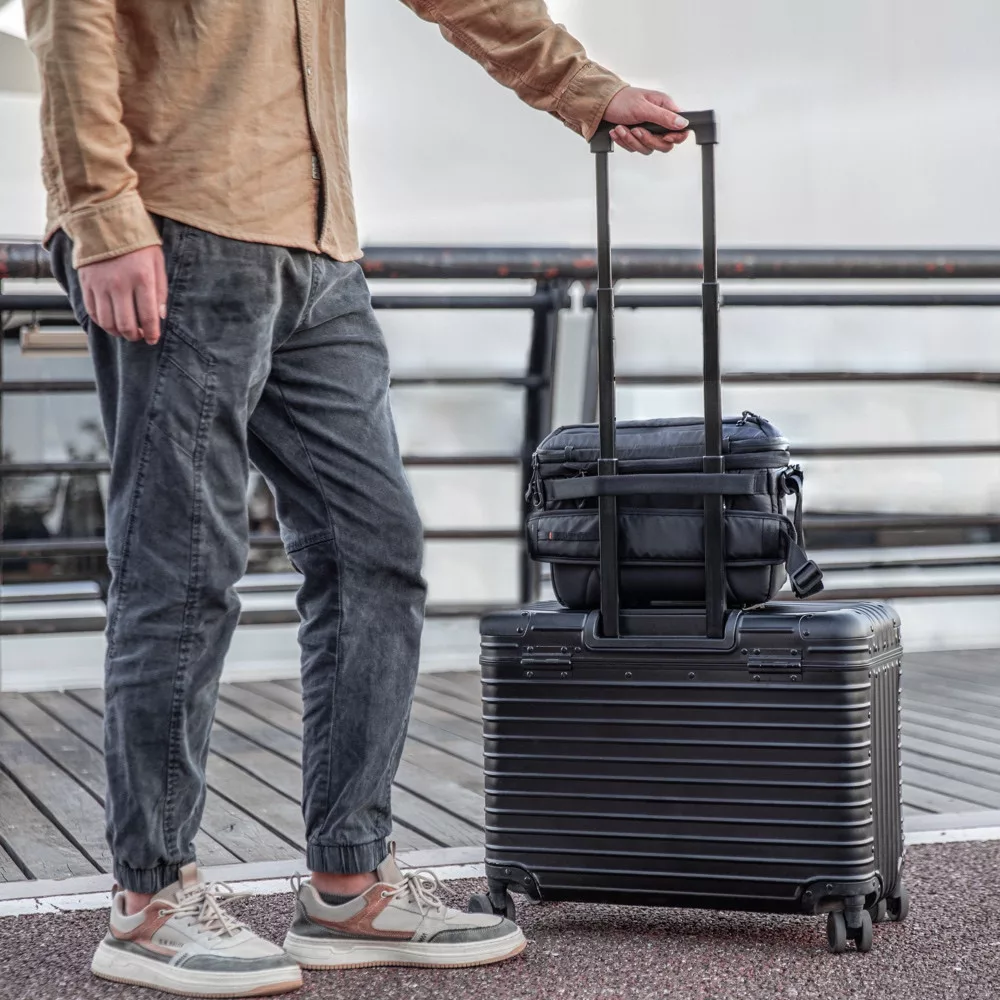 The PGYTECH OneMo Sling with its innovative "Sandwich" structure, organising your gear is a breeze. The main sleeve fits cameras, drones and iPads, while the adjustable open middle sleeve is perfect for stabilisers or large items. The front sleeve lets you store small essentials and fits a 500ml water bottle. There is also a discreet inner pocket where you can hide your AirTag for extra security against loss or theft.