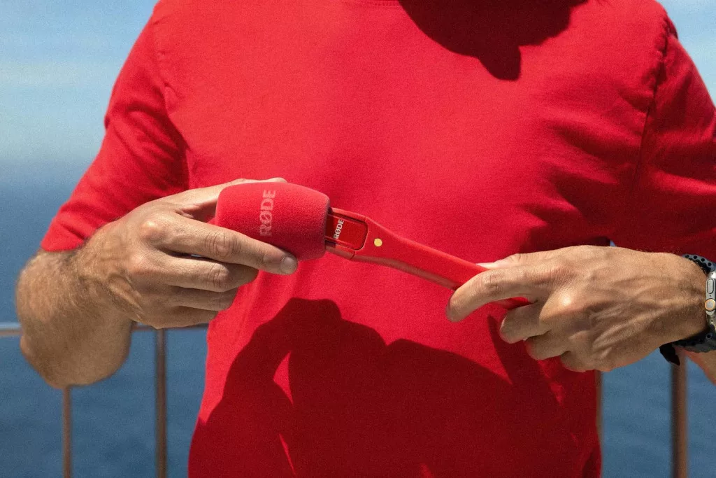 RODE Interview Micro mikrofonfogó nyél vezeték nélküli mikrofonokhoz, piros