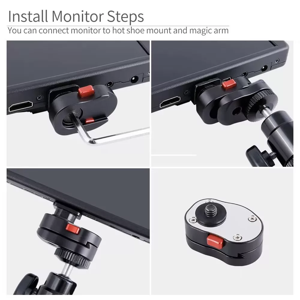 Az egyik lemez a monitorokra, a másik pedig a Magic Armra, állványra vagy kamera objektívjére szerelhető 1/4" menettel.
