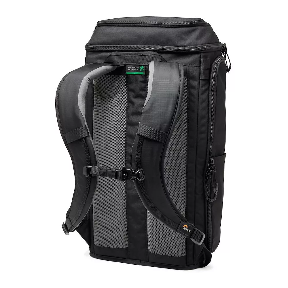Kifejezetten kényelemre tervezett táska a ProTactic Lite BP 250 AW III: a hullámos formára öntött és perforált EVA hátlap javítja a légáramlást, a dupla sűrűségű pántrendszer és a SlideCam mellpánt erős tartást ad. A hátsó panelen egy csatorna is található, ahol övet tudunk a táskához adni, hogy még jobban eloszlassuk a súlyt. A táska megáll magában a ''talpán'' ha letesszük a földre, így könnyű vele a munka és könnyebb az eszközhöz is hozzáférni.