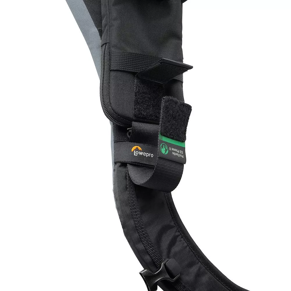 A ProTactic CS Phone III a legújabb generációs Pro vagy Max méretű okostelefonokhoz tervezett táska. A tok bármely SlipLock™ kompatibilis hevederhez vagy normál övhöz rögzíthető. A telefonhoz azonnal gyors elérést ad, ha valamelyik ProTactic III hátizsák (vagy a legtöbb egyéb Lowepro hátizsák) vállpántjain lévő hevederhurkokhoz rögzítjük. A kétlépcsős SlipLock™ rendszerrel a telefon egy jobban férhető, használhatóbb helyen lesz, ez különösen a hosszabb pántot használó felhasználók számára hasznos.