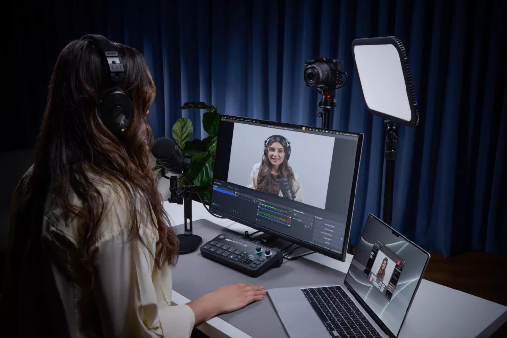 - Egy rugalmas USB-C port webkamerák és RØDE USB audio eszközök csatlakoztatásához, amelyek további videó- és hangforrásként használhatók